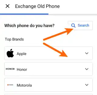 अब मोबाइल की सारी डिटेल दिखाई देगी और थोड़ा सा नीचे आने पर Exchange your old phone का ऑप्शन मिलेगा जहाँ पर आपको अपने पुराने मोबाइल की कुछ जानकारी मागी जाएगी जैसे Does your phone switch on? तो यहाँ पर आपको yes सेल्क्ट करना है और Next कर देना है।