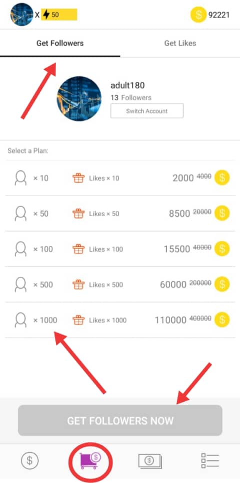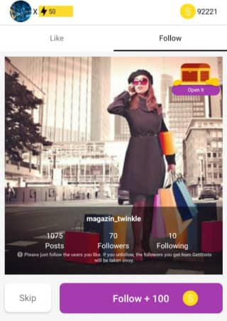 जब आपके पास 2000 Coin आ जाते है तो आप इससे अपने Follower बढ़ा सकते हैं। अब यहाँ पर अपने मेन इंस्टाग्राम अकाउंट से Login कर लीजिए और आपको 2000 कॉइन पर 10 Follower मिल जाएगे। और 110000 Coin में 1 हजार Follower मिल जाएँगे।